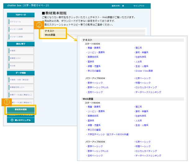 ※教材見本の閲覧は、chatterboxからのアクセスに限定しています。