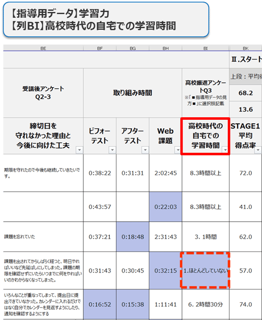 「1.ほとんどしていない」と回答した場合、基礎的な学習習慣からご指導いただく必要がある可能性が高いです。