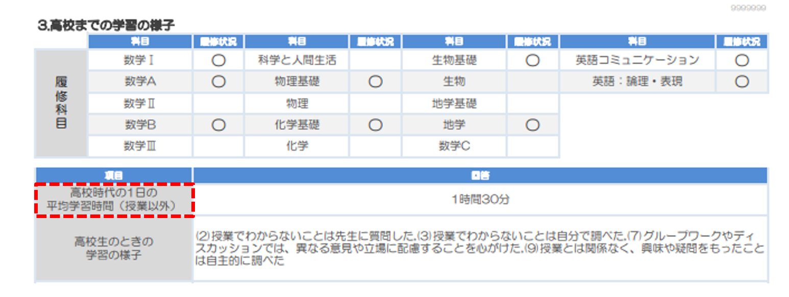 個人票3ページ目:3.高校までの学習の様子より、ご確認いただけます。