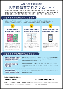 ☜ 学問サキドリプログラムの導入校向けサービスとして「入学前教育紹介文書」のひな型をご提供しています。